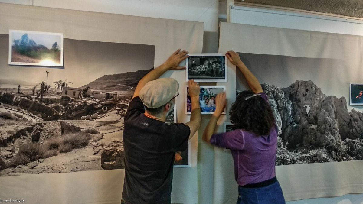בלהה 'העזר בעדי' בשלב תליית התמונות לקראת התערוכה