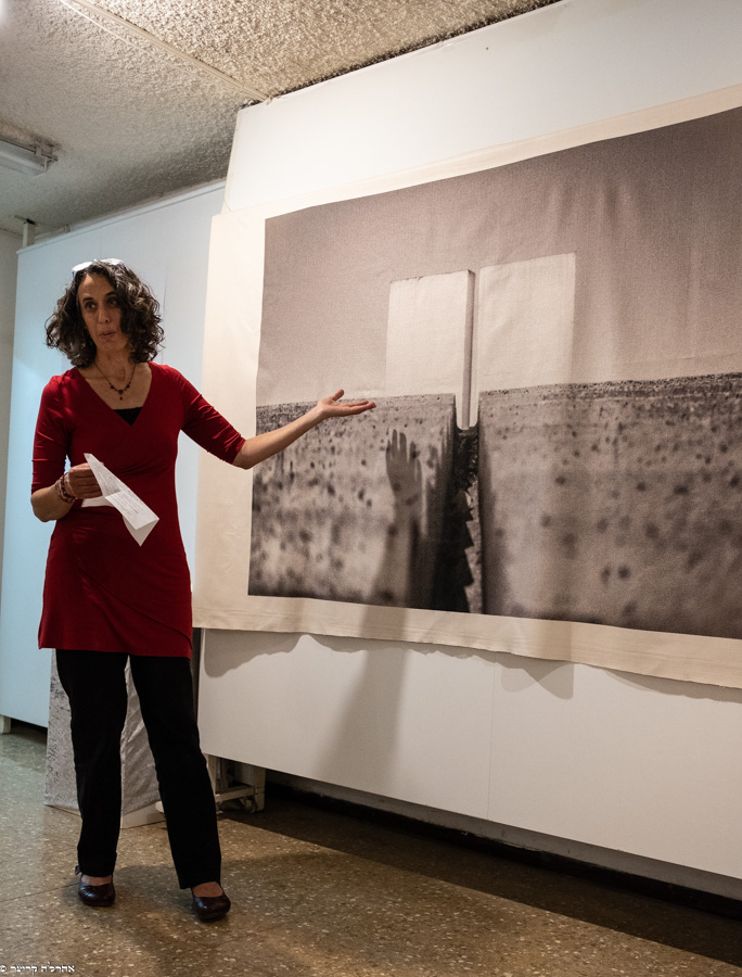 בלהה נותנת דעתה על אחד הדימויים המרכזיים בתערוכה 'לוחות'.