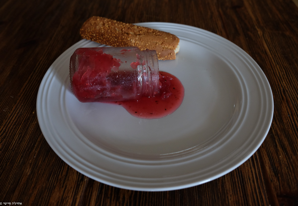 לחלק מן הריבה הוספתי זעתר (לא תבלין עם מלח ושומשום וכו', אלא רק את עלי האזוב היבש עצמו).